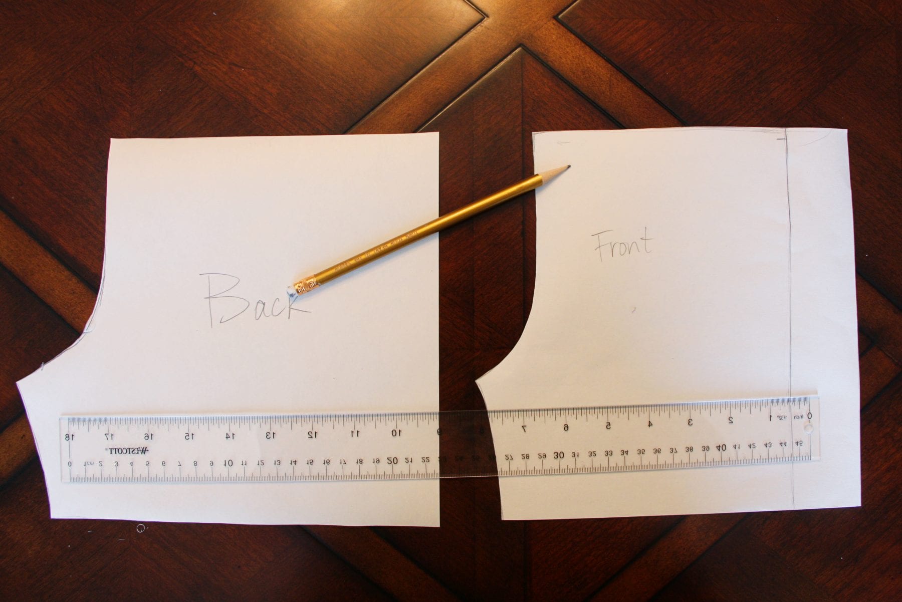 And then since the top section has a front and a back piece, I needed a seam allowance for the sides, so I added a 1/4 inch to each side, just like I did with the shorts. That way, they will match up when sewing the top to the shorts.