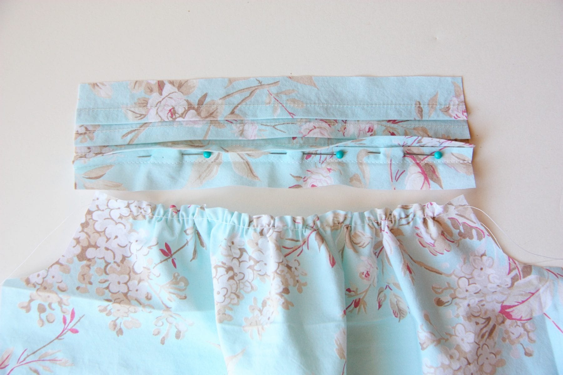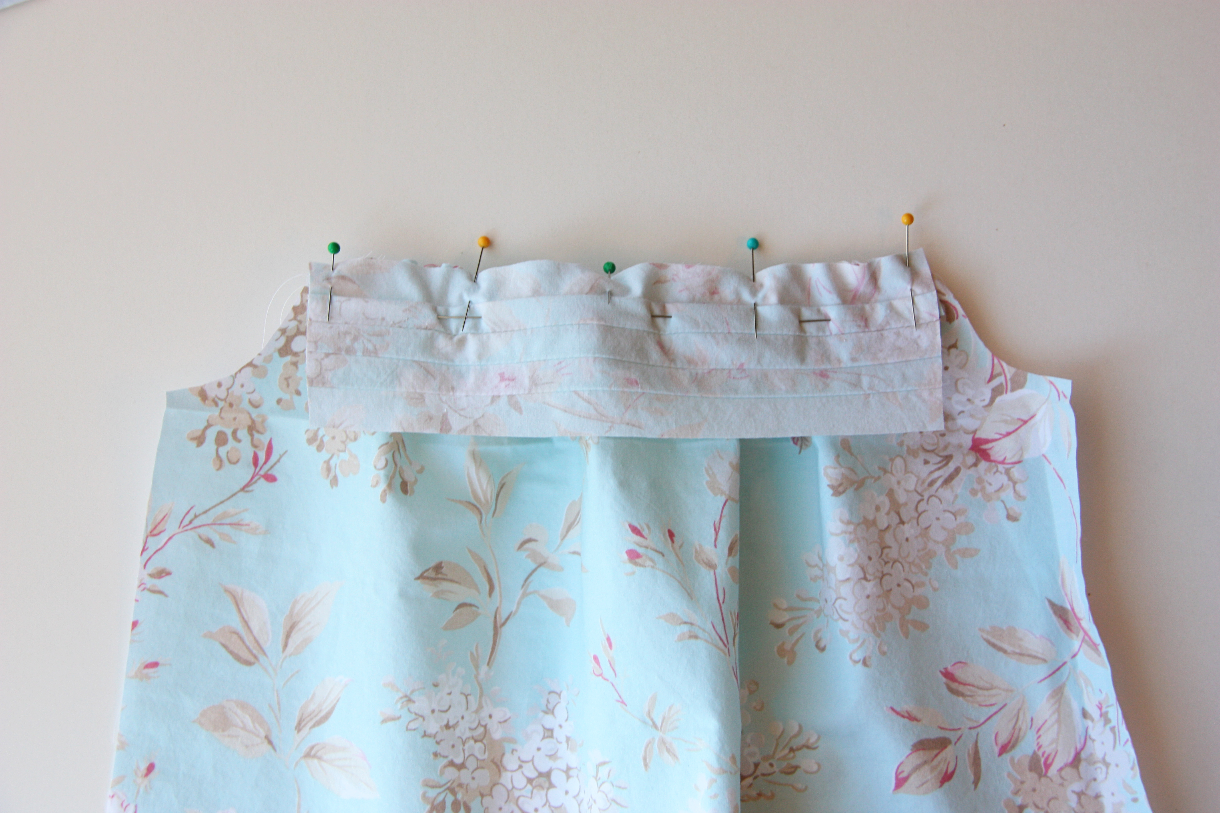 Now, it’s time to attach the pleats to the main romper front piece.Â