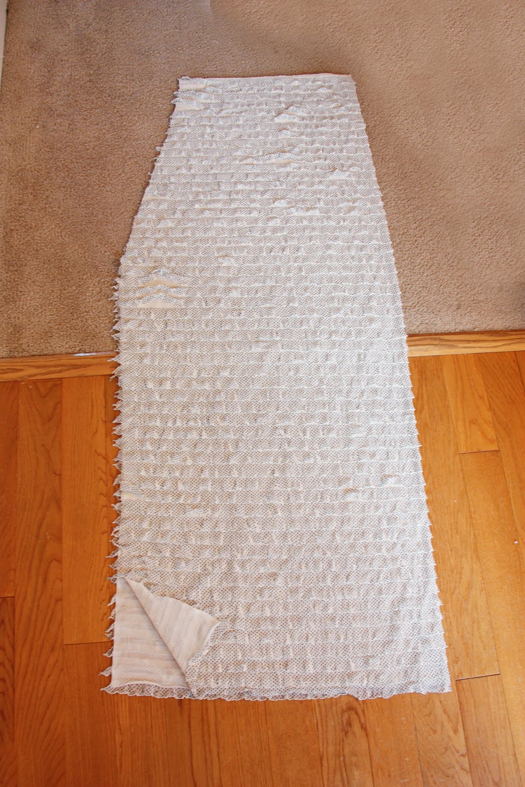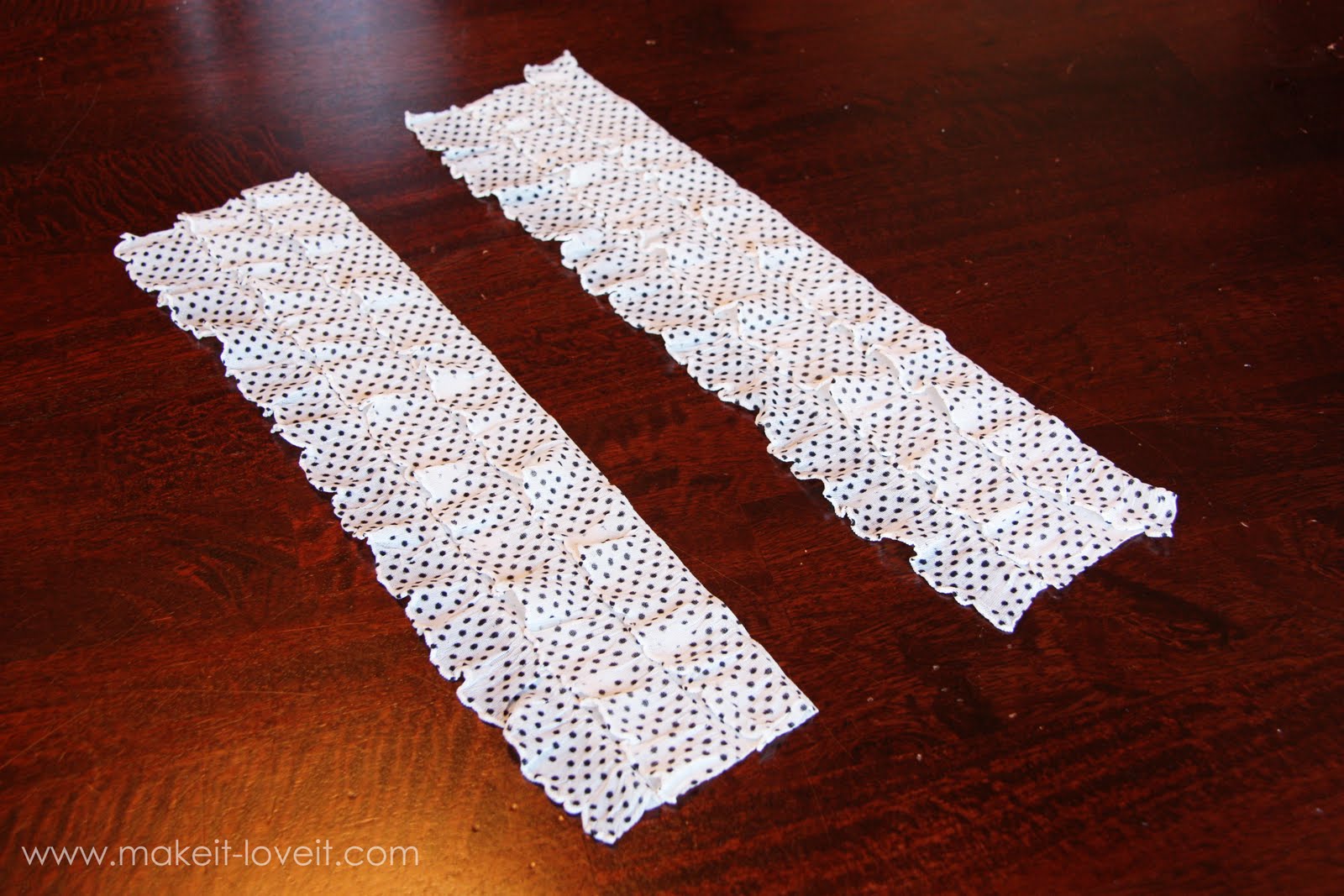 Next, cut two long strips of 3 rows of the ruffles……long enough to fit over your shoulders and with some seam allowance added onto each end.