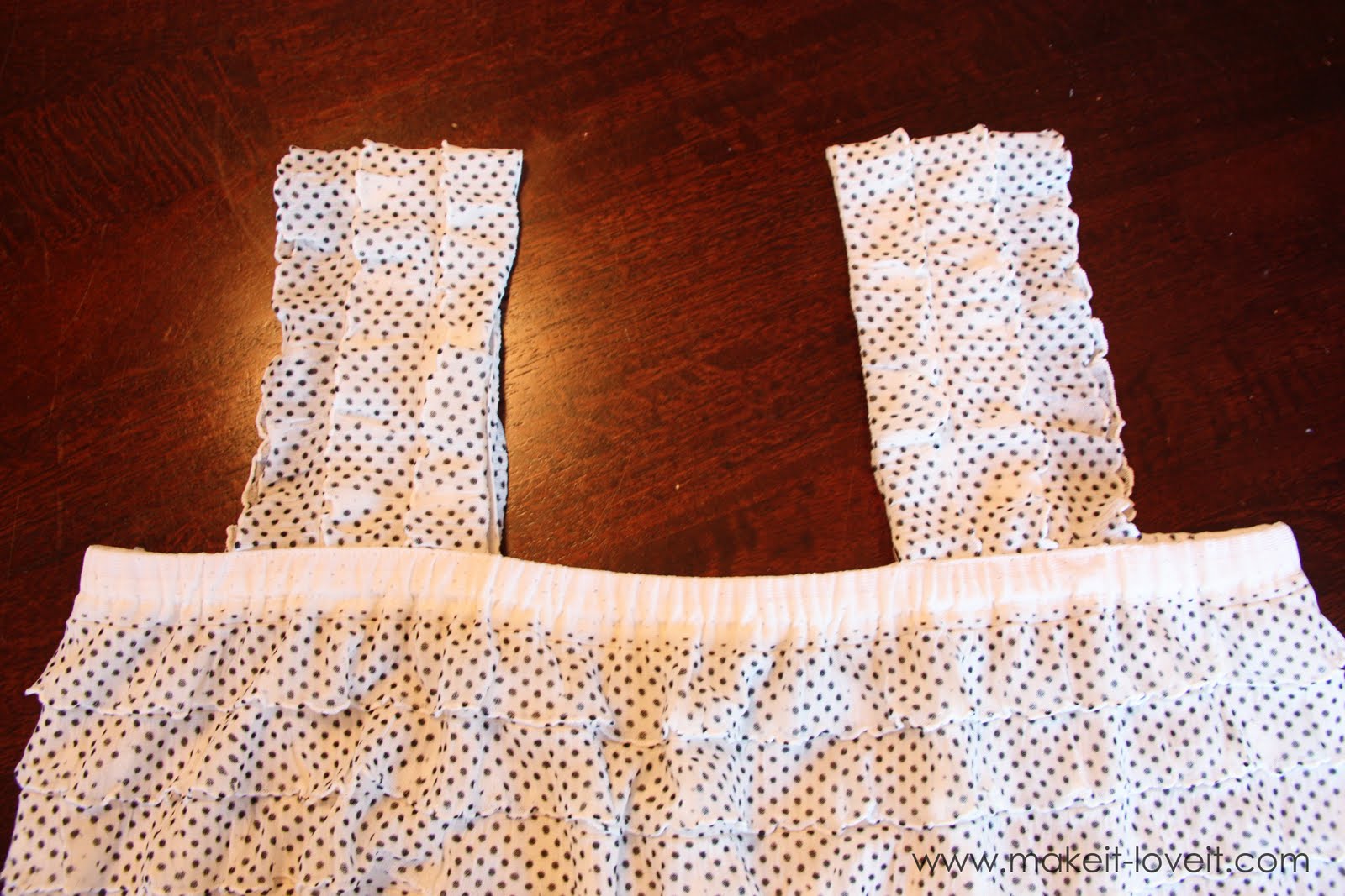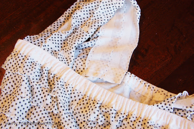 Then attach each strap to the dress, making two seams along each end……one above the elastic and one below it.