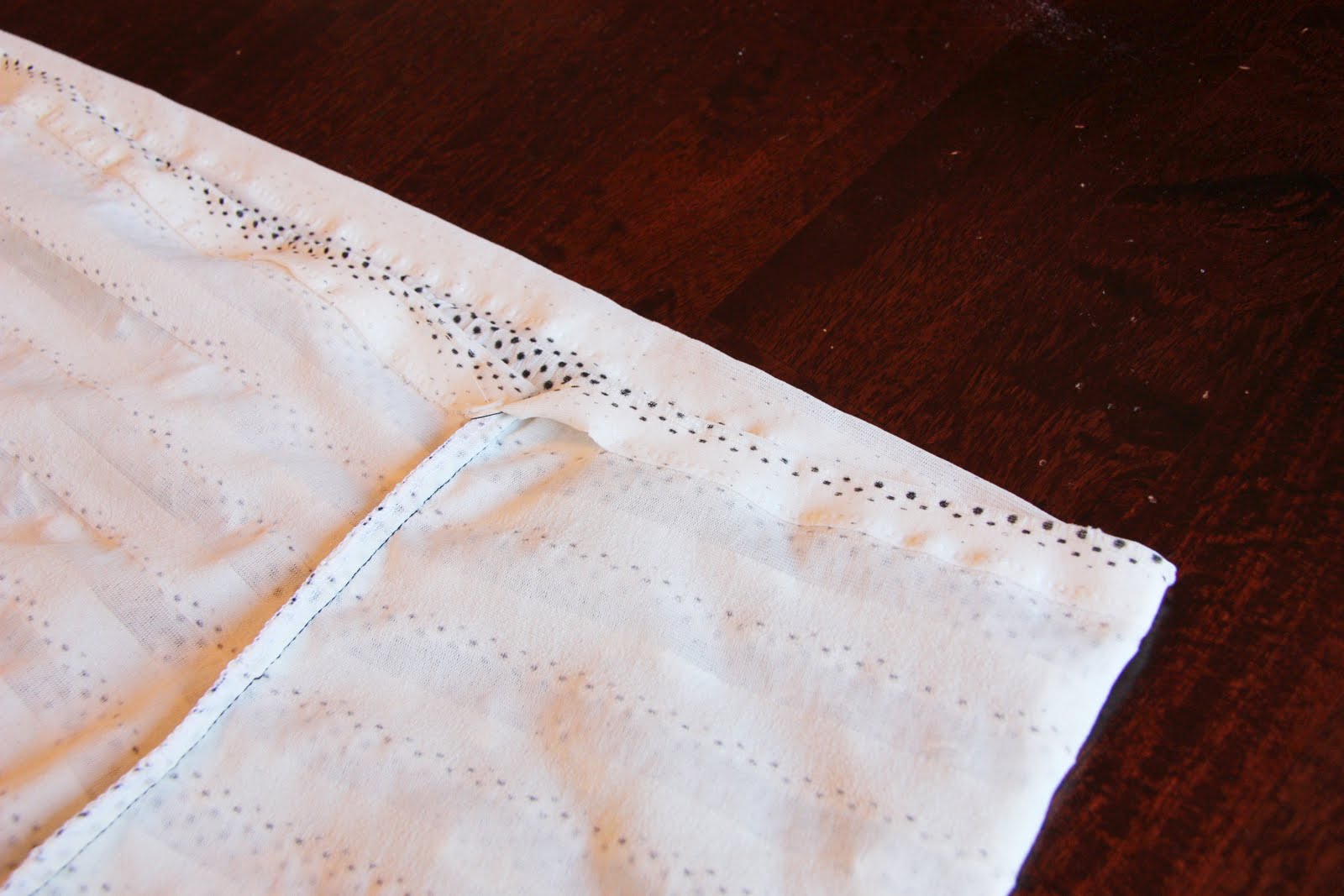 Make sure you have added about an extra 1-2 inches at the top, to create an elastic casing. Depending on your size, you may have to leave all of the width of the fabric…….or trim down the sides a bit. Just measure yourself around your bust, waist, and hips and determine how much fabric you want around you. I added a few inches to my measurements because I didn’t want it skin tight…..but still wanted it to contour my shape, from my waist up.