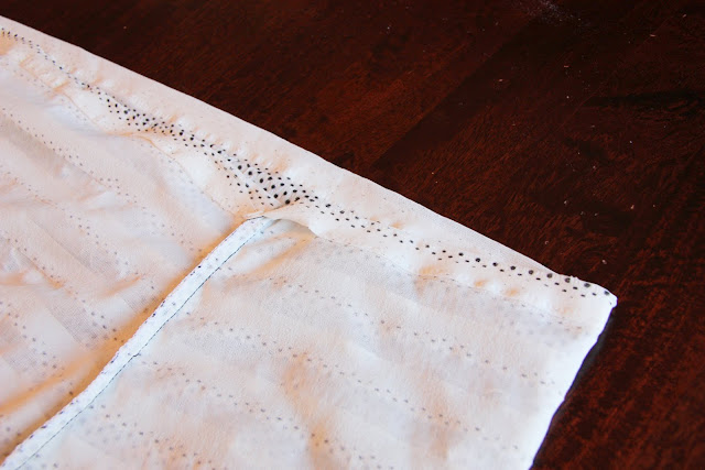 Then thread a piece of 1/2 inch wide elastic, that will fit snugly right above your bust line (with a little extra length added for a seam allowance).