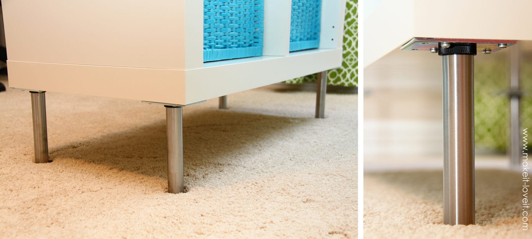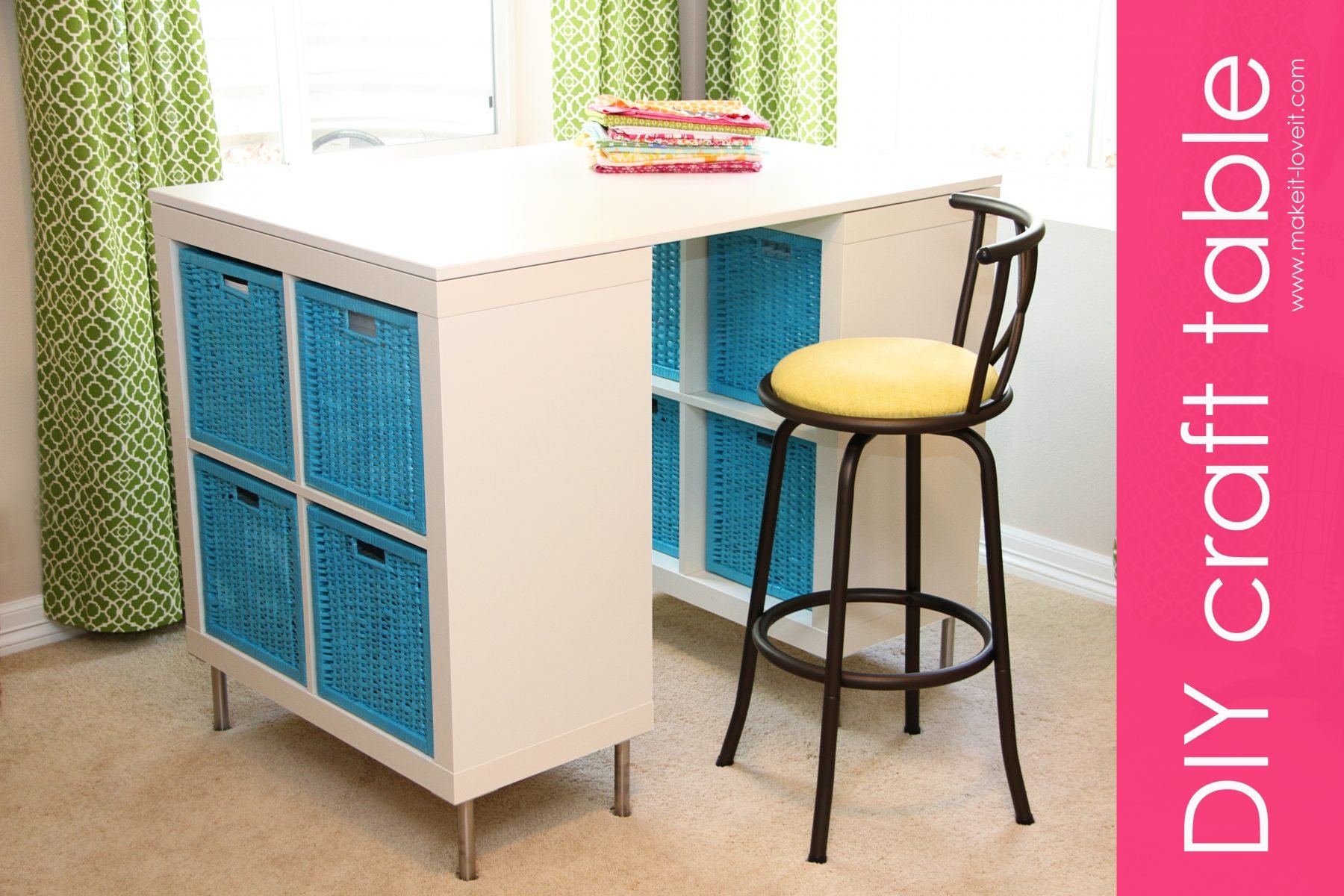 Need some links? Here’s the tabletop, the shelves, and the legs.  The baskets are from Ikea too….but not online.  And remember, the legs are optional……and only necessary if you wanted to add a little height to the table.