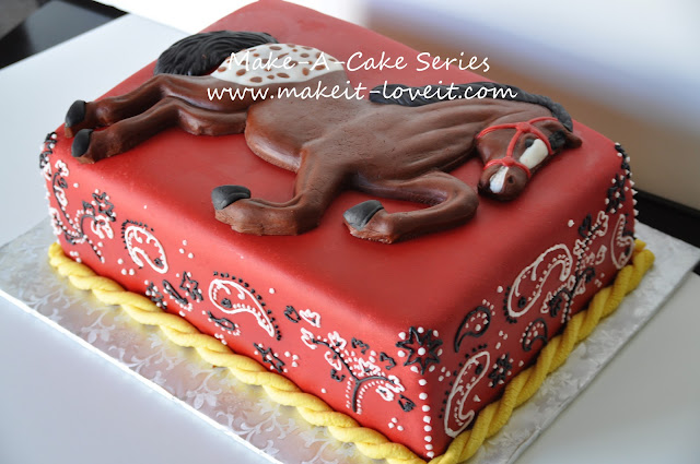 Wrap the ribbon around the bottom of the cake and attach in the back with a little bit of water on the fondant.