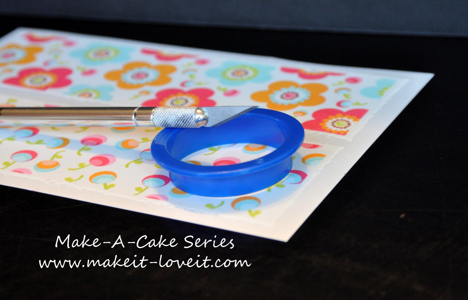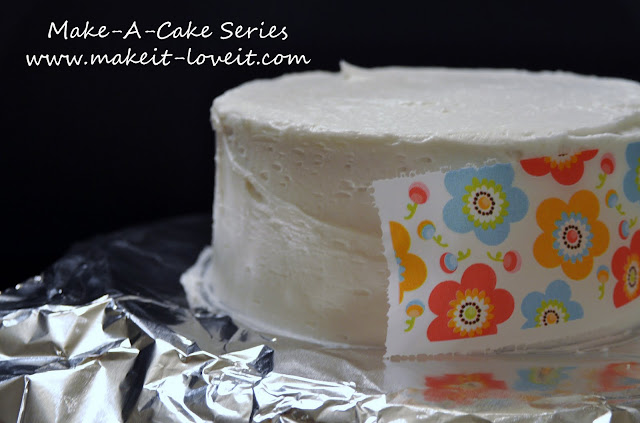 Note: once you put the paper down on the cake it will not come off. The paper started to get soft once it touched the moisture of the icing. So be careful to place it where you want.