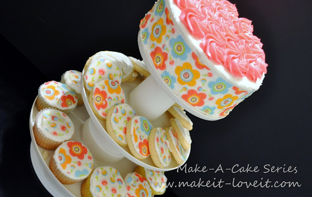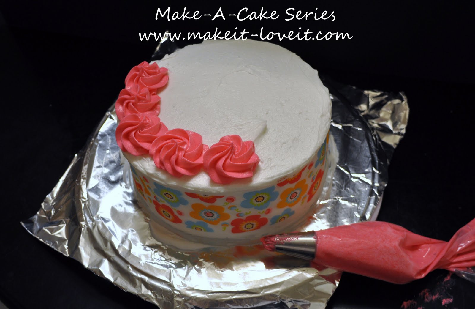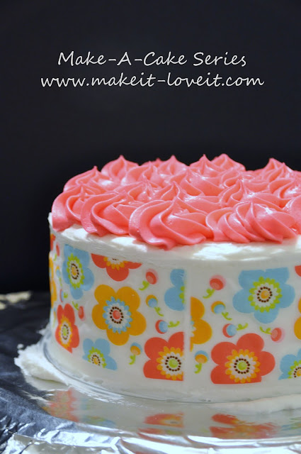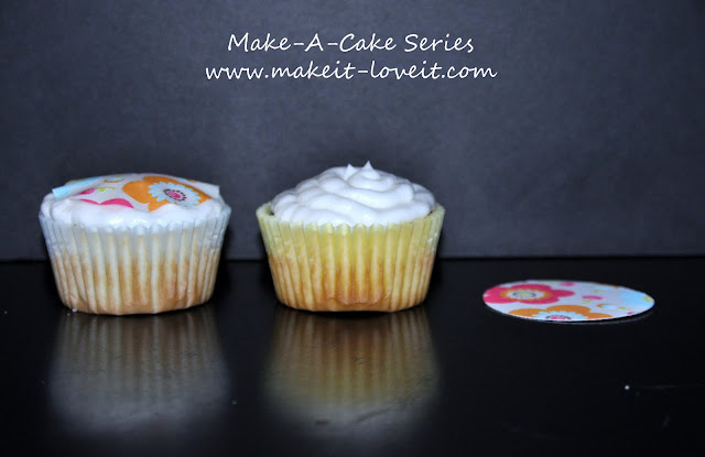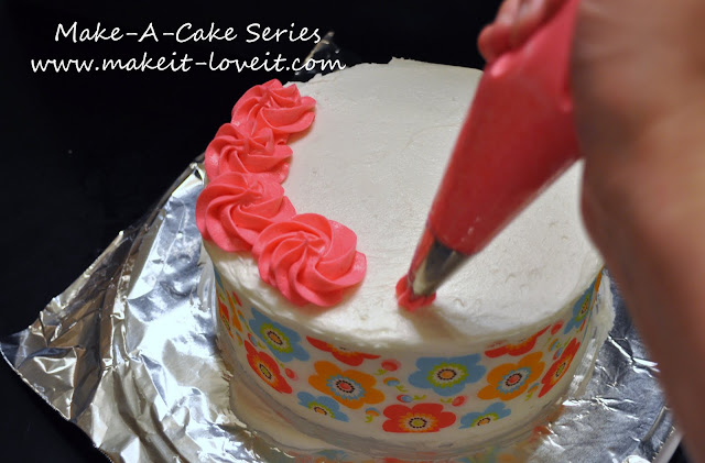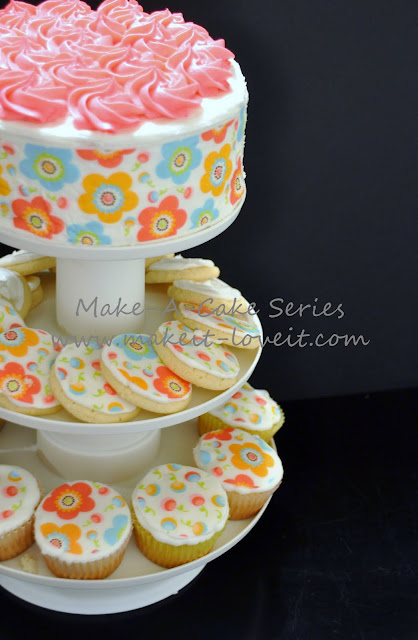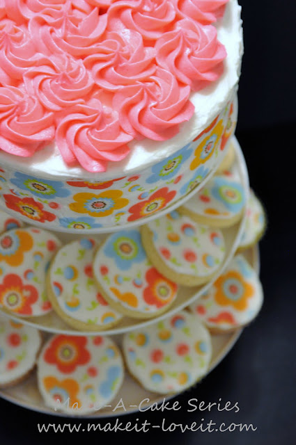 On the instructions for the cake tattoo, they say to put a circle of edible paper on top as well. But I wanted more paper for my cupcakes and cookies, so I decided to save mine and put rosettes on top of my cake.