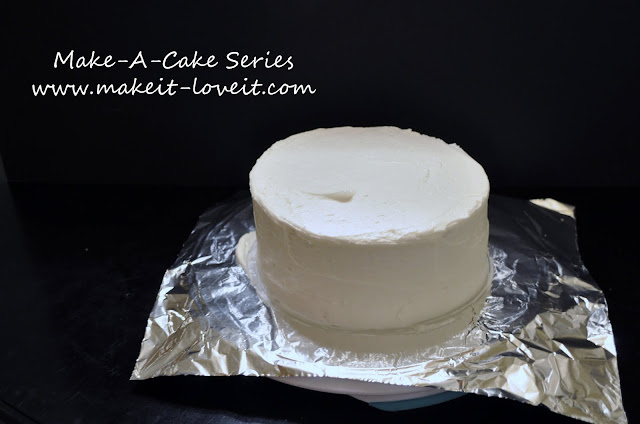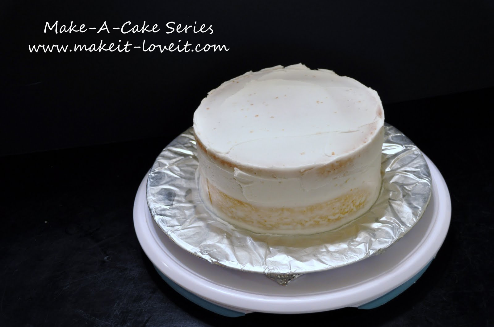 Stack and crumb coat your 6 inch cake. If you need help with these steps look HERE.