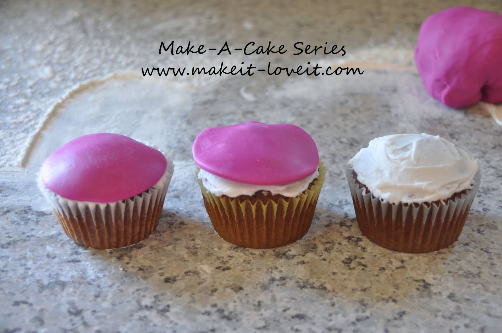 Place the circle of fondant on top of your cupcake and work it with your fingers to smooth it out and get it to fit to the edges.