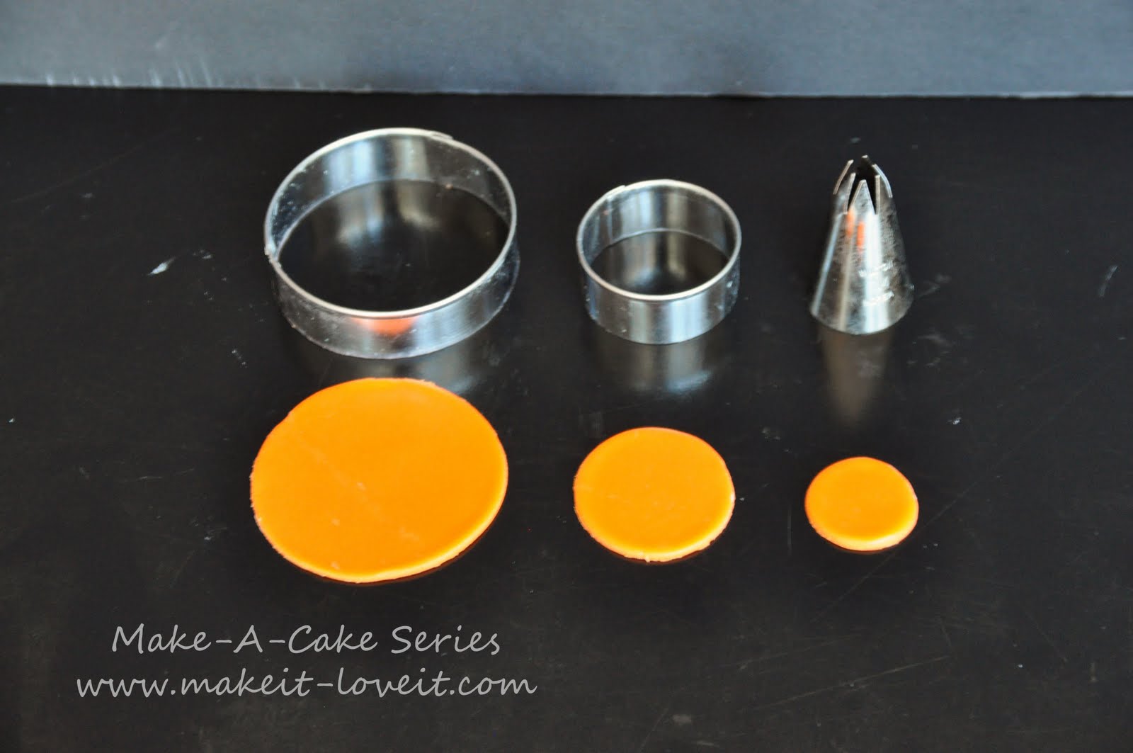 I cut out gumpaste circles in three sizes.