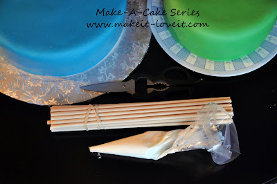 Supplies for stacking two cakes.