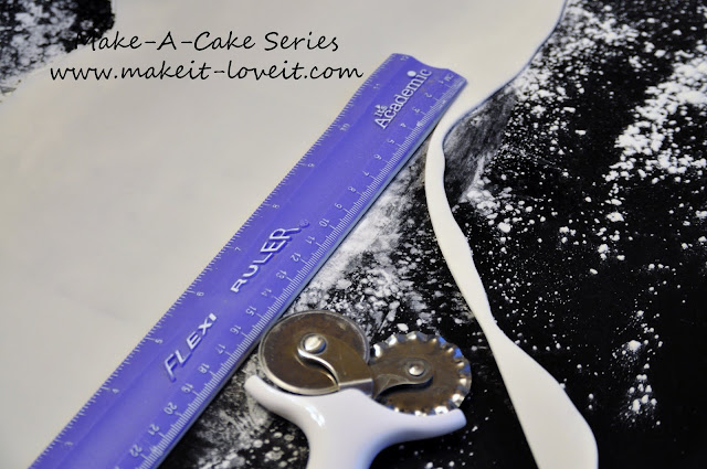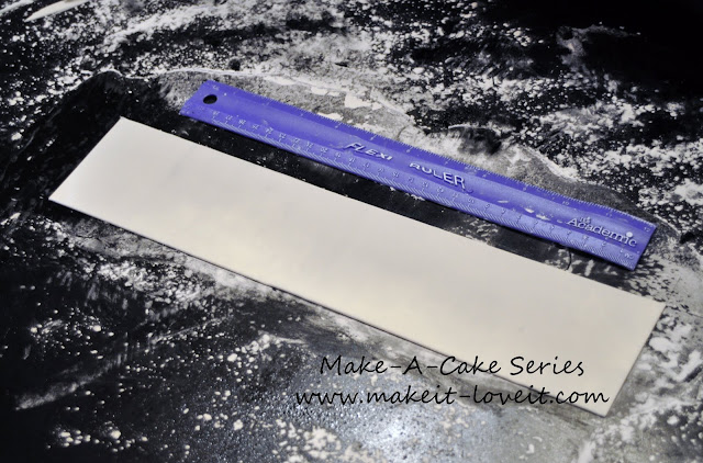 Then cut your gumpaste into a rectangle. For my large bow I cut my gumpaste 13 inches long by 3 inches wide.