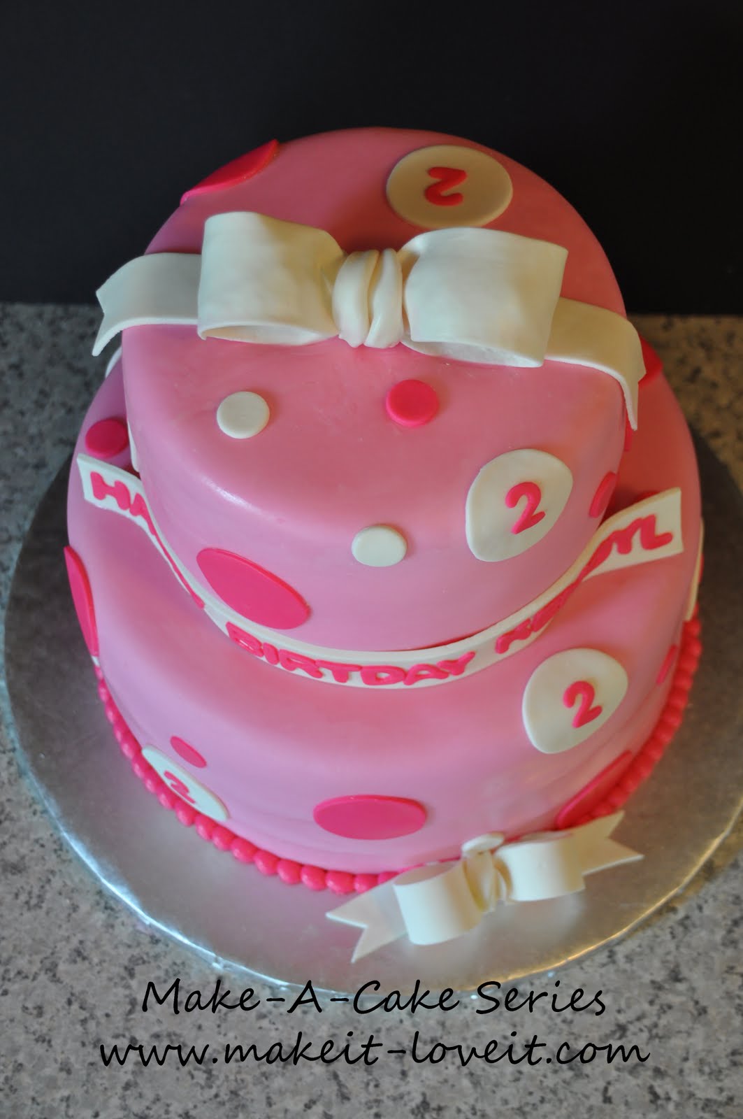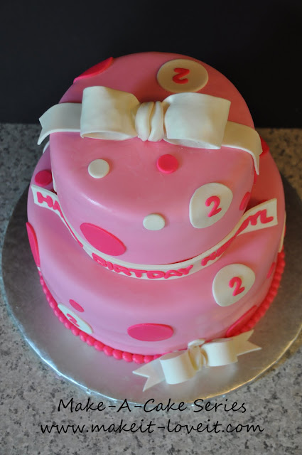 After I made the bow (and took all of the pictures for this tutorial) and then assembled it on top of the cake, it cracked in half! I almost cried. I had a backup bow but it was a smaller size. So the finished cake received the smaller backup bow.