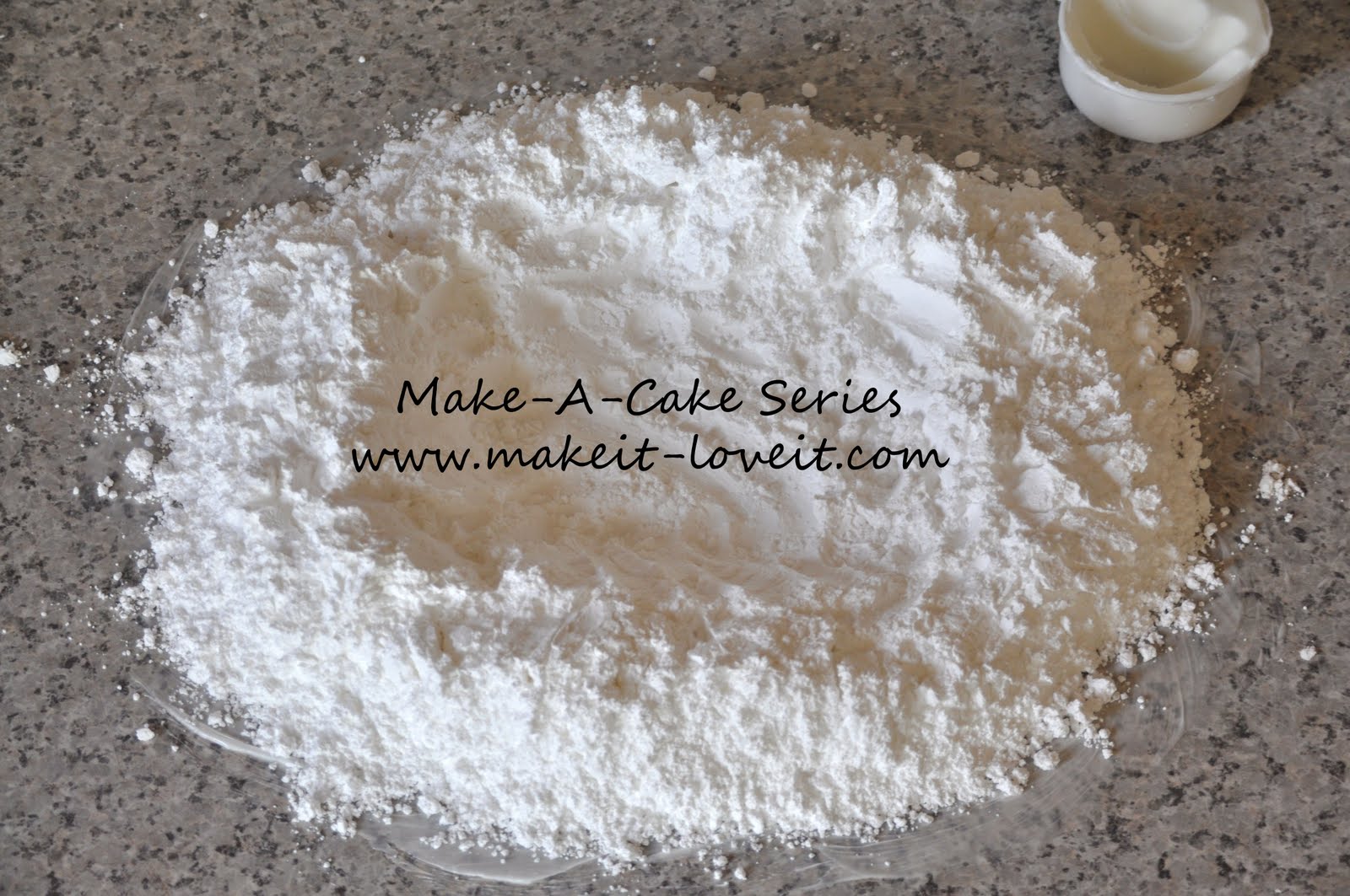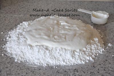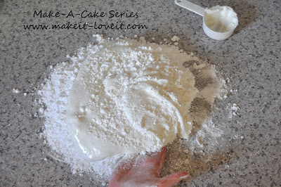 Sift your powder sugar into a pile on top of the shorting. I hate sifting when I bake but in this case it is really helpful. If you don’t do it you will end up with clumps of sugar in your fondant.