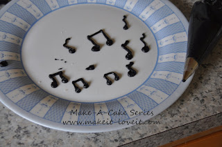 I practiced piping notes on a plate until I was comfortable with making music notes.