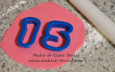 Next, cut the name you need right out of the fondant on the cake board. Make sure the name is centered and at the front of your cake…….and then peel each letter out carefully.