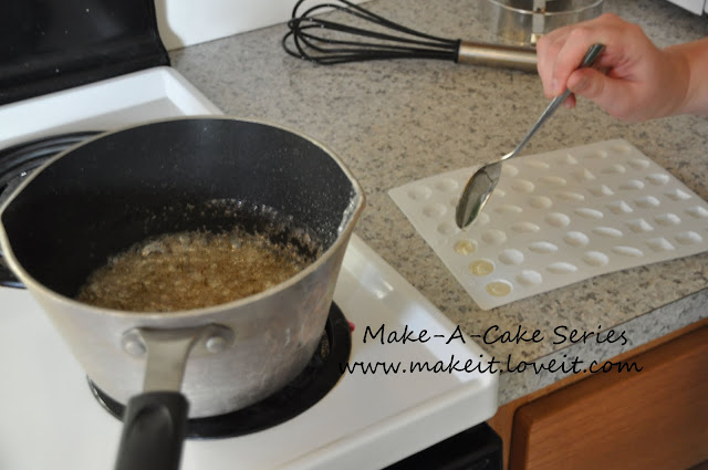 After the sugar is cool, turn your mold over and pop out the candy. Then break off the little strands of excess that may have dribbled while spooning the mixture.