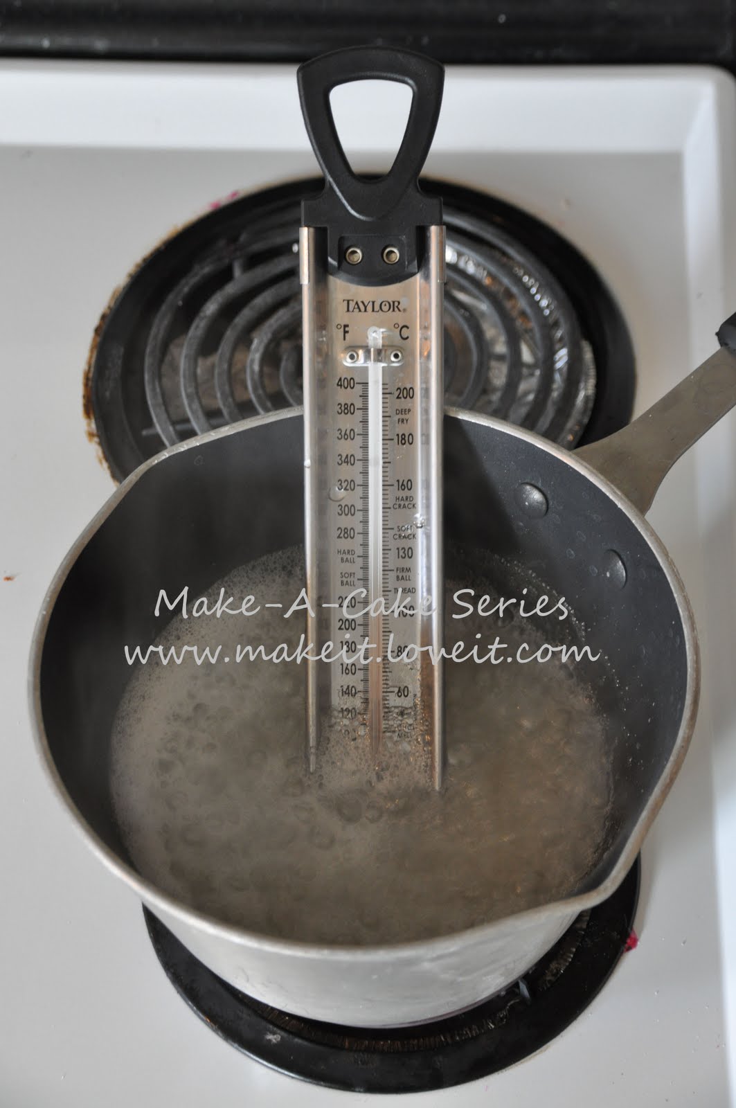 When it comes to a boil, add your candy thermometer and do not stir anymore.