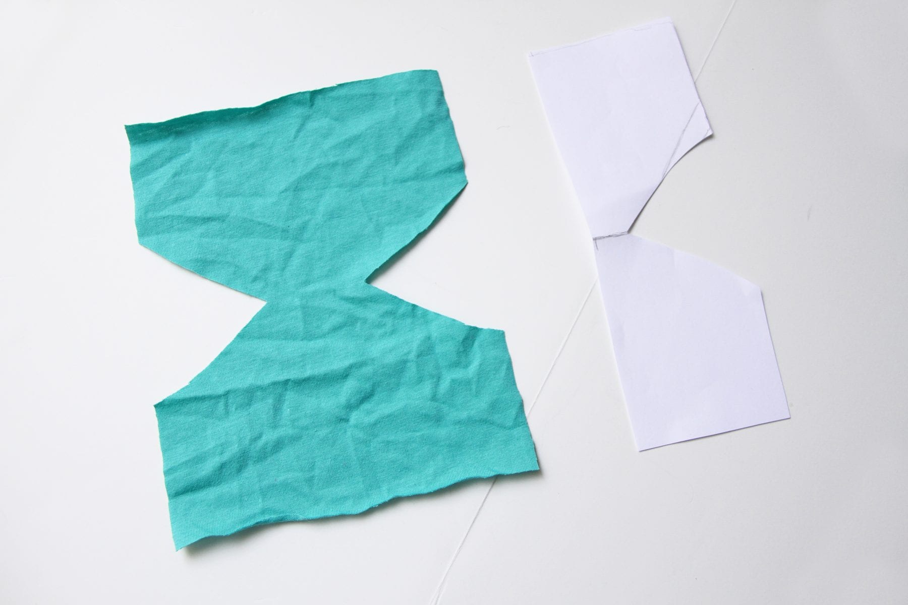 First, you’ll need to cut out the pattern (or create your own and cut it out) and place the long edge of the pattern on the fold of your fabric. Then cut.Â