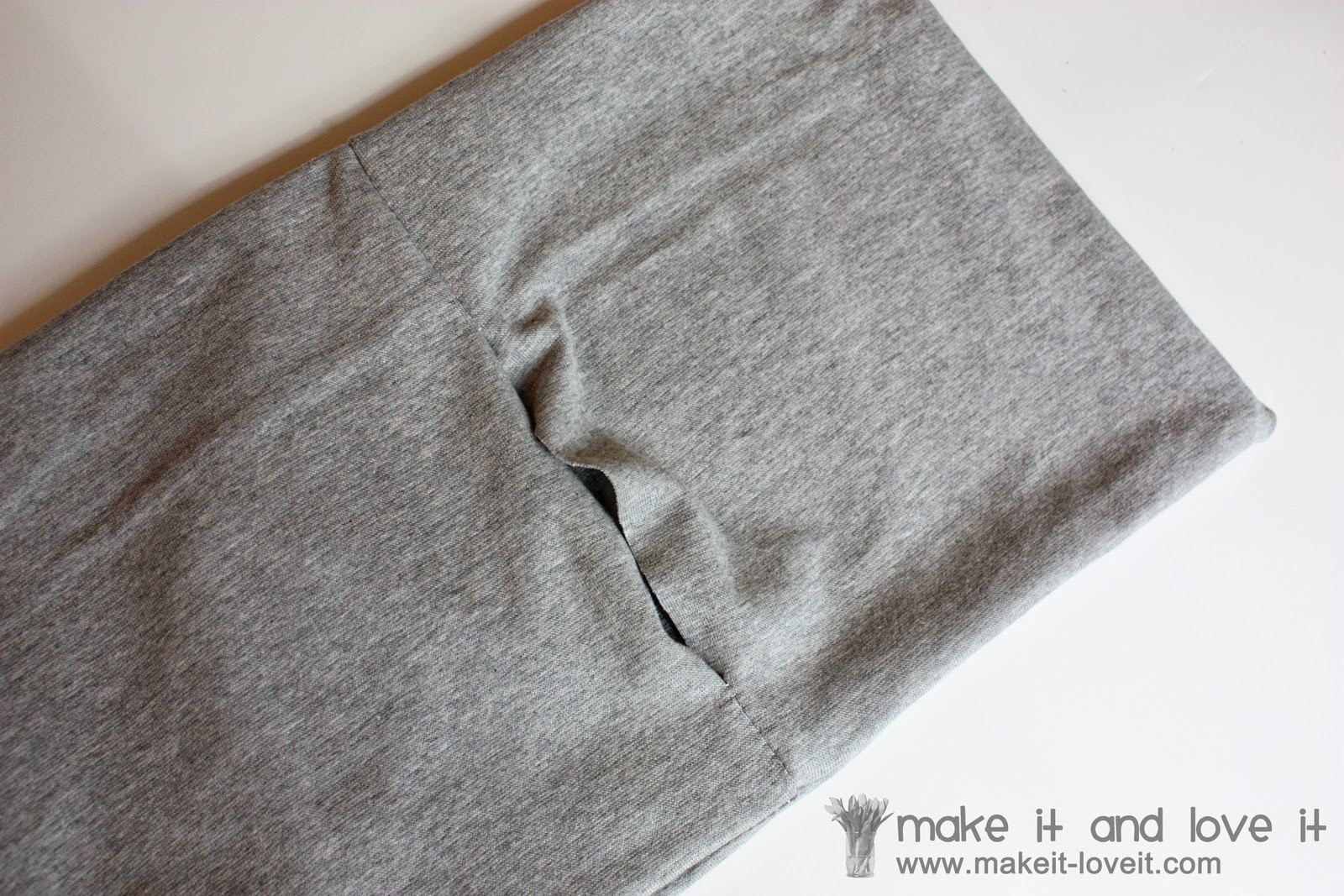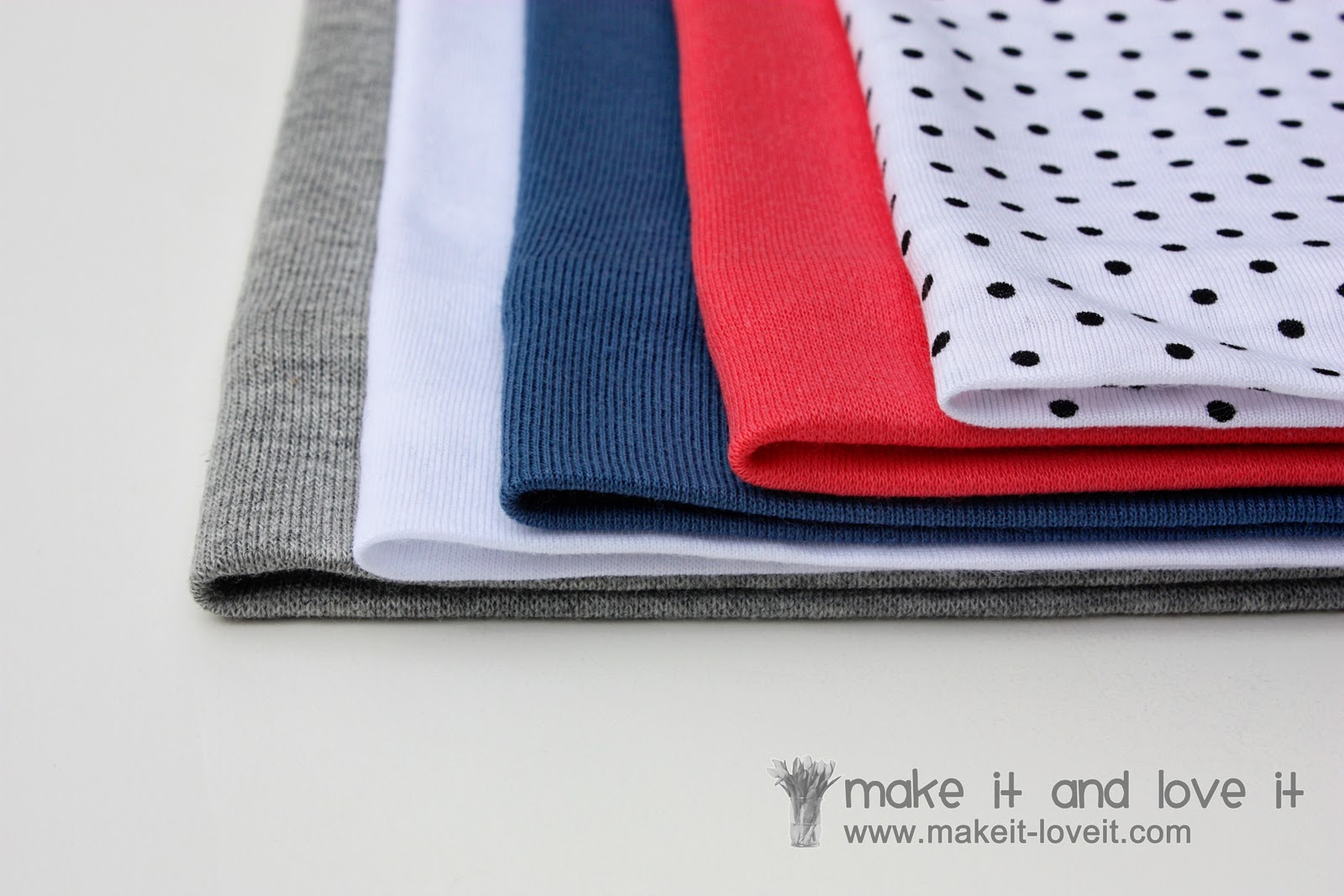 I cut a piece of knit that was about 35 inches wide and 20 inches tall. Some of the knits weren’t as stretchy so I experimented with making the piece more or less than the 35 inches wide. Just start bigger and then you can always cut it down.