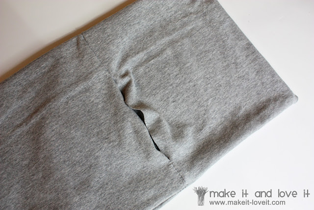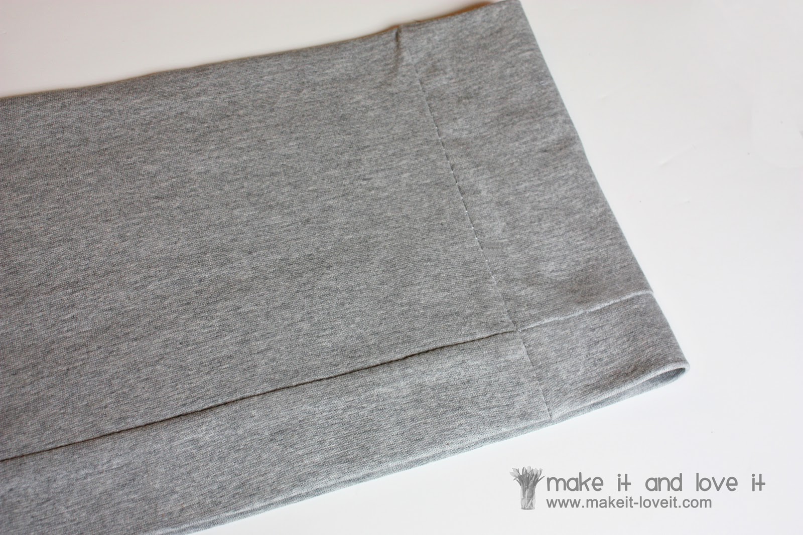 First, I folded the knit in half longways and used a zig-zag stitch (so it would still stretch) along the long side, using a 1/2 inch seam allowance.