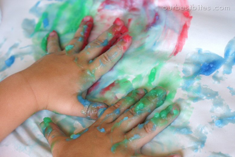 Little tiny fingers will love feeling the texture of Homemade Finger Paint– and it’s non-toxic so no worries if it ends up in their mouth!