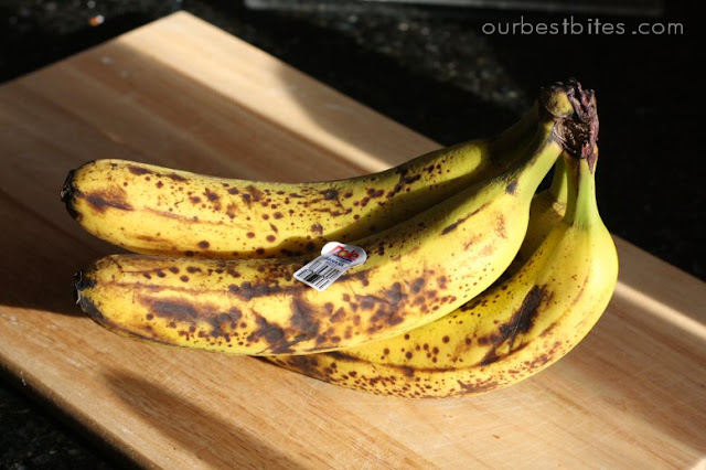 Bananas can tend to get a bitter taste to them after freezing and it’s intensified if they’re under-ripe. So definitely use very ripe bananas for this. They shouldn’t be brown-mushy-banana-bread-ripe, but ripe. I found the best ones to be like the ones below, where the outsides were spotty but the insides weren’t brown yet at all.