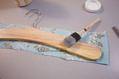 I just used Mod Podge to adhere some fabric to each side of the wooden hanger.