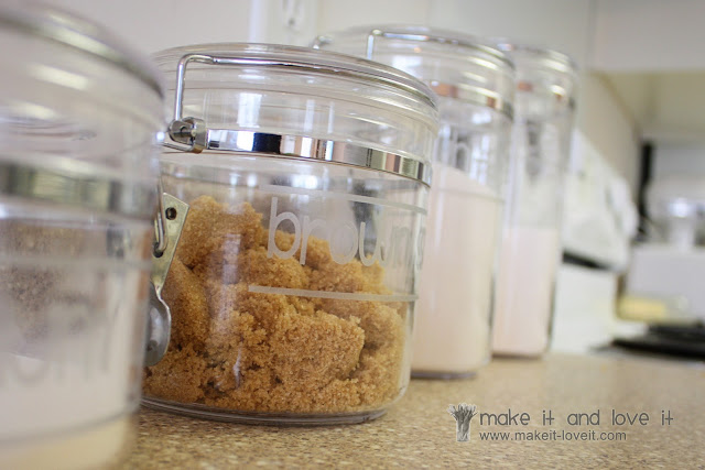 And I can’t make my favorite gluten free Chocolate Chip cookies without all four of the ingredients that fill up my canisters…….so I figured they were most important to have inside of them. Ha.