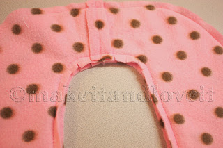 Cut out a horseshoe shape out of paper and make all of the corners curved. I decided to make the part that goes behind the neck a bit more narrow so that it didn’t push my little girl’s neck forward. I drew mine about 10 1/2 inches tall and about 15 inches wide. This size is plenty big for my toddler and I’m sure will work for children of all ages. You might want to increase the dimensions a bit for an adult sized one.