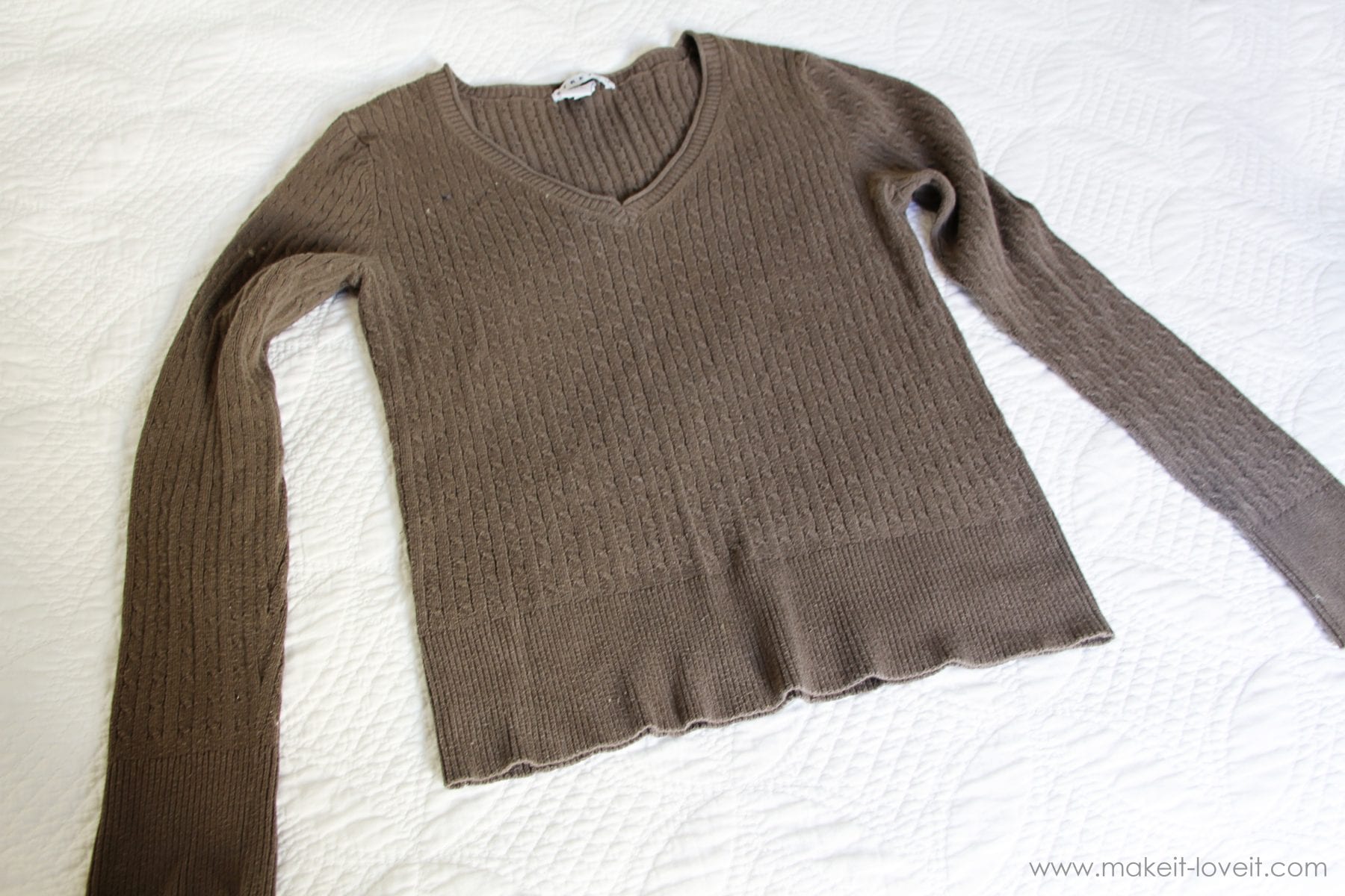 The sweater I used was an old Gap sweater……nice and soft and not worn out at all. (just too short for me)