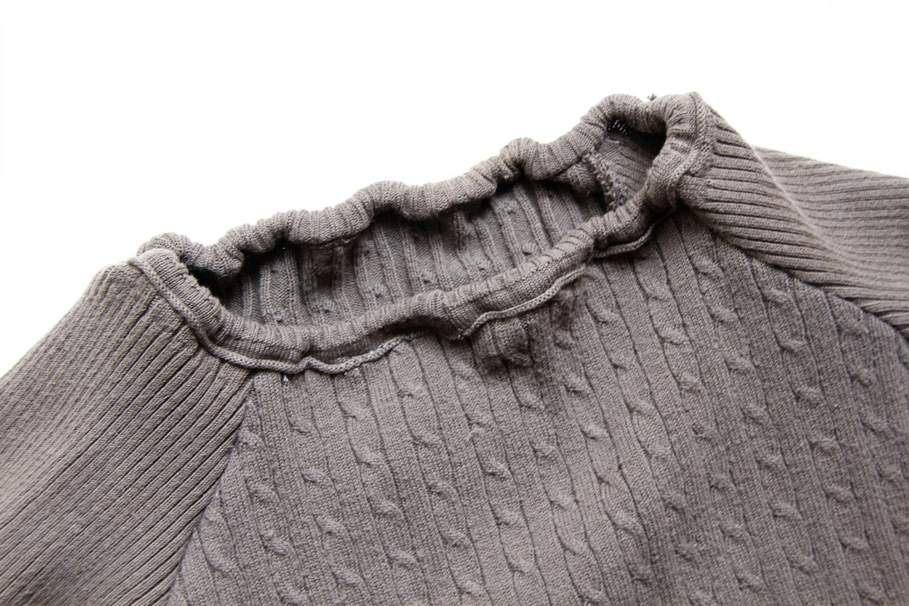 To begin, you want to use a thin sweater. Nothing with a ton of bulk or it will be too hard to sew the neckline. And it helps if the sweater is knit together pretty tightly……just makes things easier. If you don’t have one to spare, check out the local thrift shop. There are always treasures there.