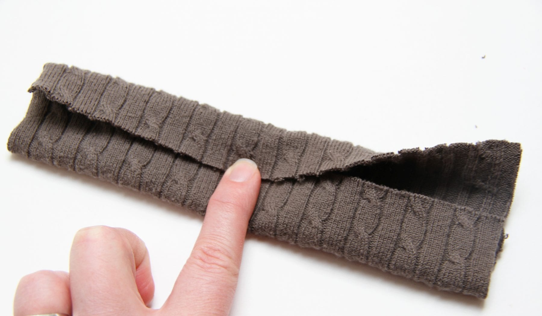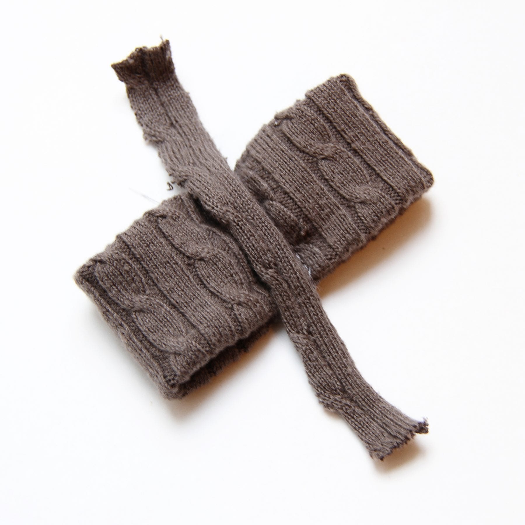 Now, for the little bow…….I cut a strip of the sweater scraps and then folded in the long edges.