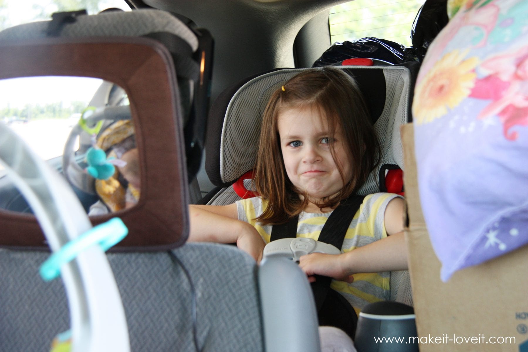This one is in the back seat……guarding the goods.  We told her not to sneeze or that pillow would fall on her.