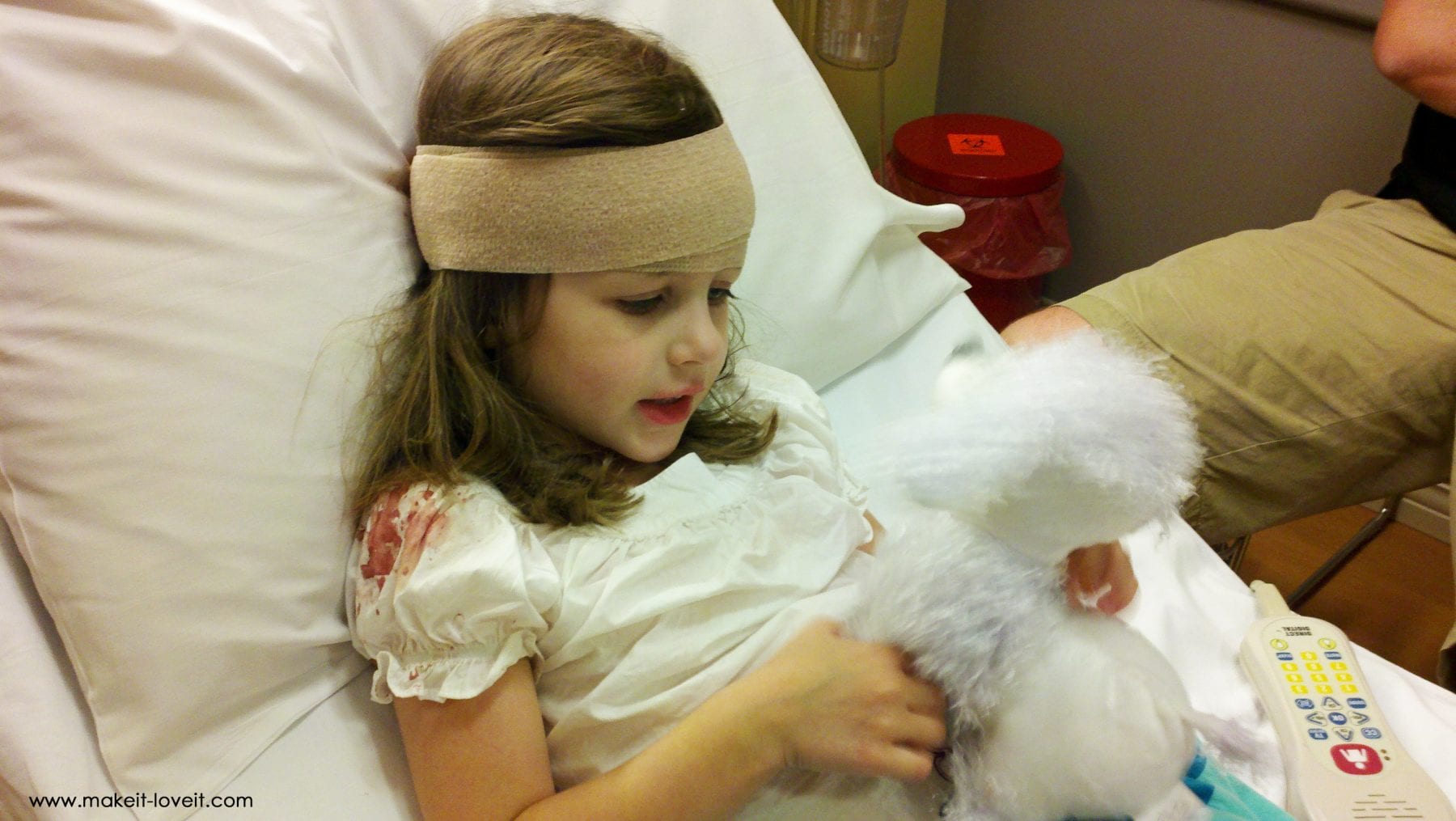 This little lady fell backwards into a 5 foot window well and split open the back of her head.  You know, to the skull.  Gross, sorry.  (The PA taking care of her asked if I was okay after taking a look for myself.  Ick.)  A 5 minute drive to the hospital, 2 panicked parents, and 6 staples later (we tell her that they’re bandaids)…….she’s good as new.  The nurse brought her a new puppy (she named Curly) and a cup of juice and she perked right up.  Bless her little heart.