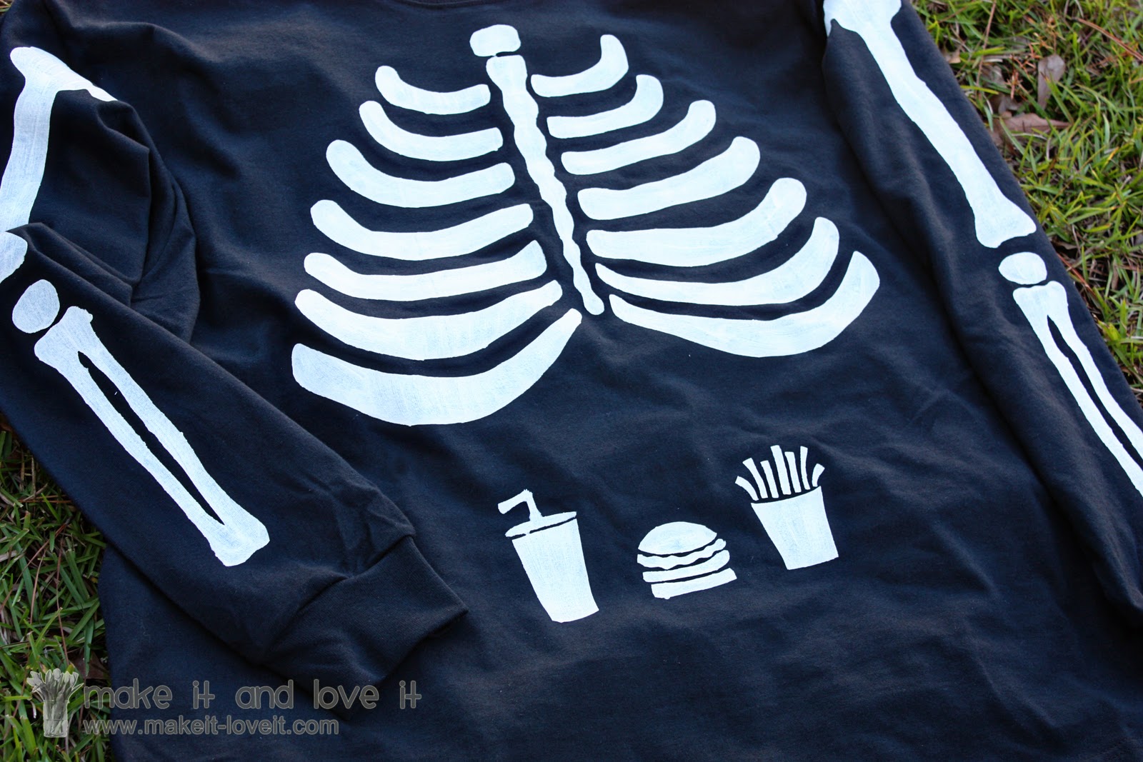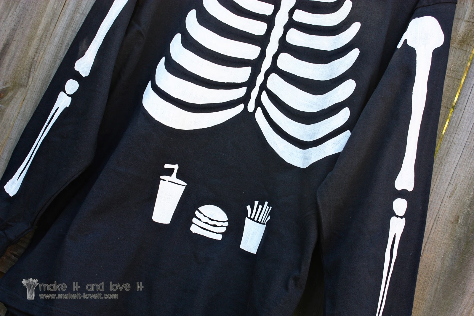 Try your hand at some freezer paper stenciling and make a skeleton costume too…