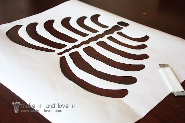 First, I bought a roll of freezer paper (by the tin foil and saran wrap at the grocery store) and sketched each of my skeleton parts on the paper side of the freezer paper.