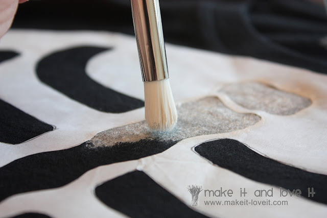 …….then ironed the freezer paper down, without using steam. Also, be sure to iron really well around those inner edges of your shapes…..you don’t want paint to seep under.