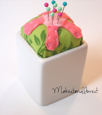 Start shoving it full with batting. Glue one more side down and shove as much batting in as you can. You want it to be tight with batting so that you can shove pins in.