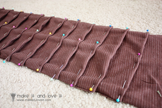 Then make one long seam right down the center of the scarf. This will help keep the pleats more in place and give it a great look.