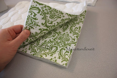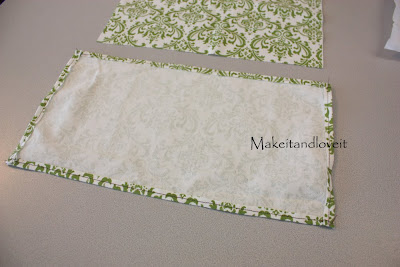 Next, you’re going to place the batting along the back of your large rectangle pieces and then place these large rectangle pieces together, with right sides together.