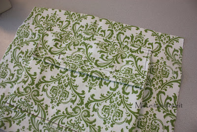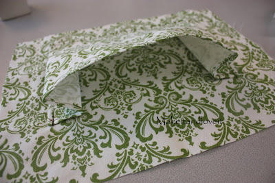 Then I cut out a rectangle big enough to make a pocket on the back, including enough width to make a pleat. Then I hemmed under all of the edges. (As a size reference, I made the width a little wider than the rectangles I used for the tote.)