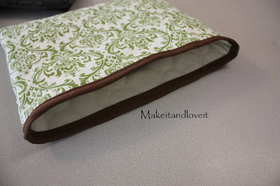 First, I grabbed some of my upholstery fabric and some quilted batting from my stash. Then I decided how large I wanted to make my bag, including enough room for expansion and seam allowances. Then I cut 2 of each of the materials in that size. Then I cut 1 of each of the materials with the same width dimension, just shorter. (this smaller piece will be the inside divider…..so if you’re not making a bag for a dual screen, you can skip this step.)