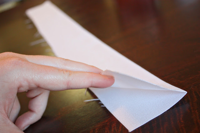 Then, I turned it back the other way, sewed each end closed using a 1/2 inch seam allowance, then turned it back and ironed it flat again. So then I had a mock collar piece that was 2 inches tall and as long as the top opening of my jacket.