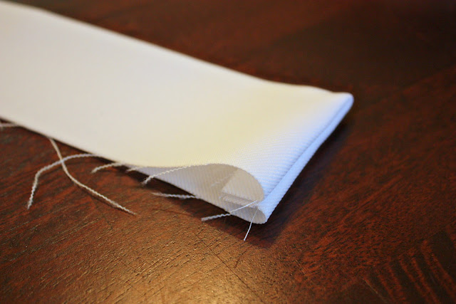 I made a tube that was an inch longer but not as quite as tall as my 1 1/2 inch tall mock collar. I sewed the tube, turned it right side out, and ironed it flat.