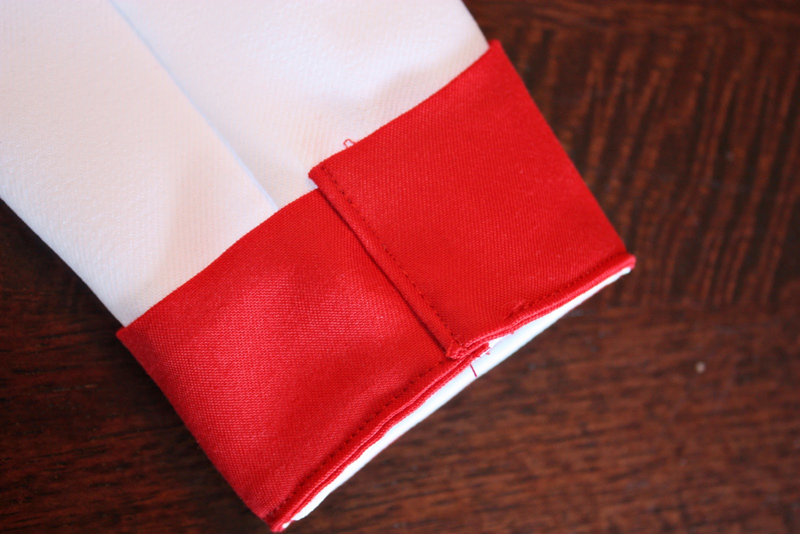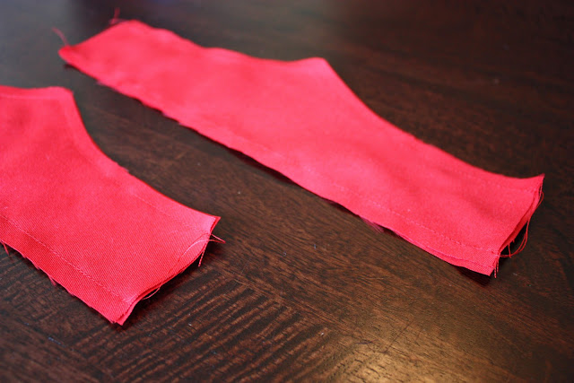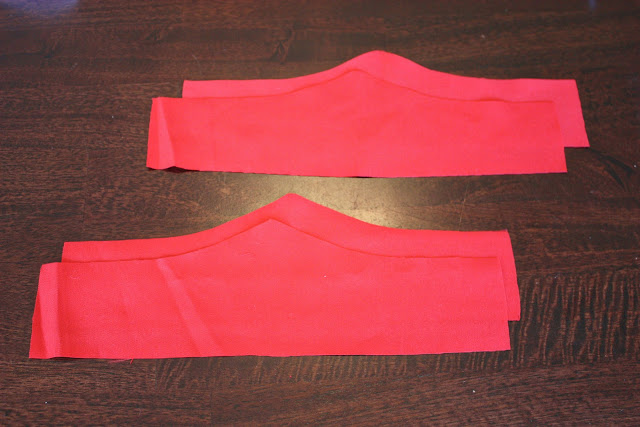 I wanted red cuffs like seen in the link above, with a bit of a point on one side. Like this: