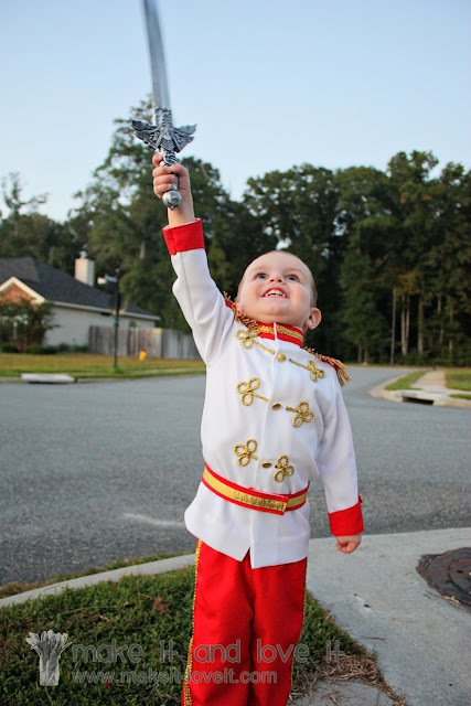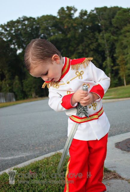 here), I asked my little boy if he’d like to be Gus Gus the mouse (he has the perfect cheeks and belly for that!) or if he wanted to be Prince Charming. And because his big sister was going to be a princess, and because every day he wants to do exactly what she is doing…….Prince sounded most like Princess, so I think that’s why he quickly chose Prince Charming.