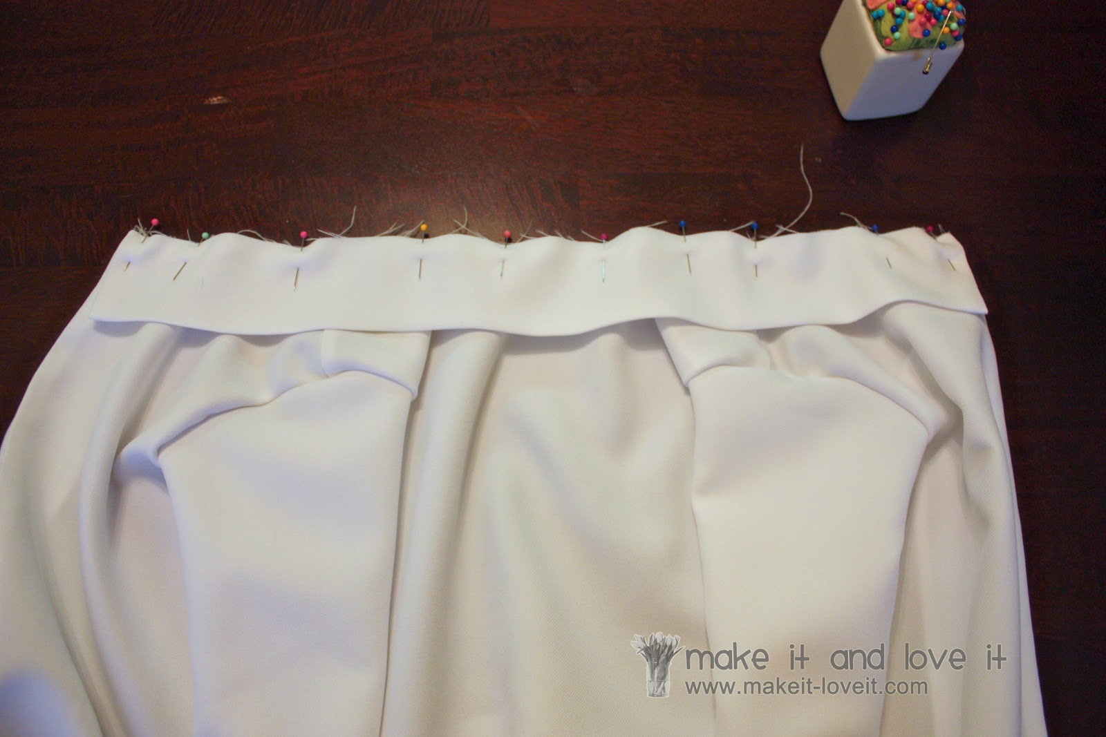 And overlapped the back, folding under the top raw edge. Sew into place.