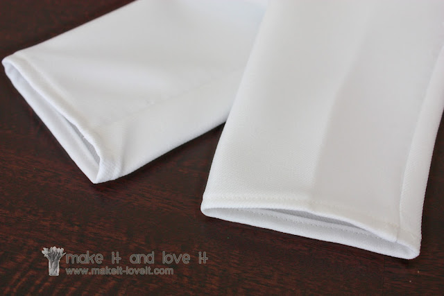 Then I hemmed up sleeves by folding them under a 1/2 inch, then another half inch, then sewing them in place.