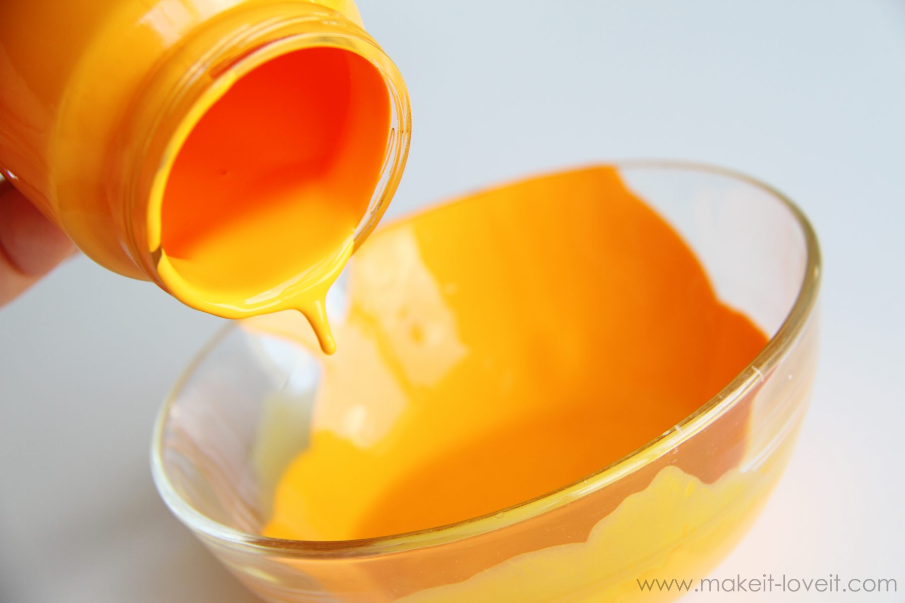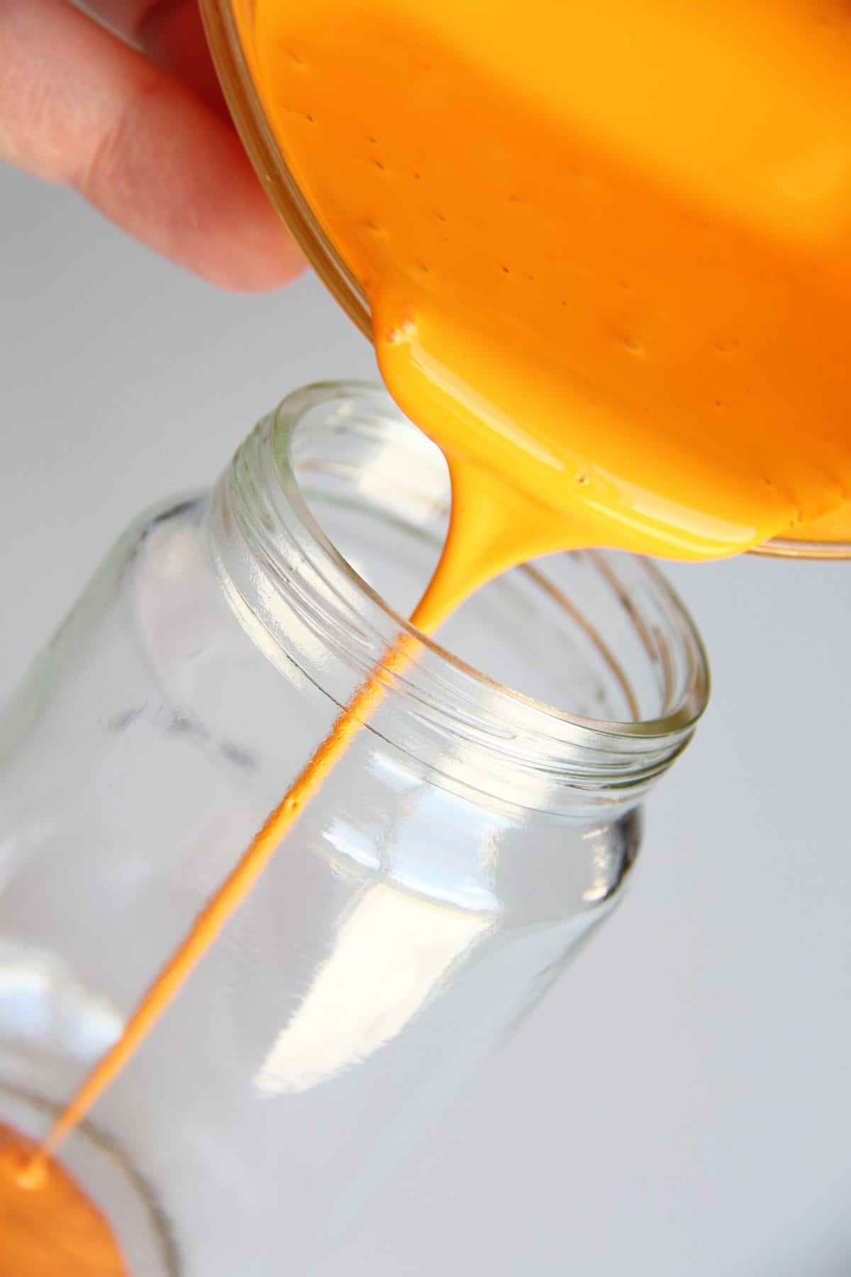 Next, pour a good portion of the thinned paint into your empty jar.