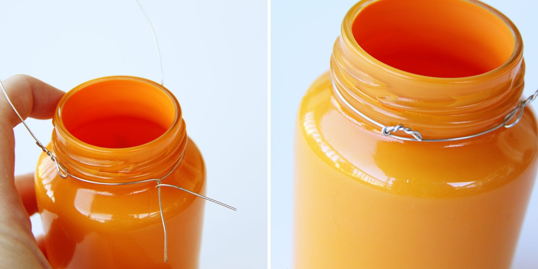 Then use a paper towel to wipe any paint that may have dripped onto the outside of the jar.  Use a wet paper towel as well to get it extra clean.